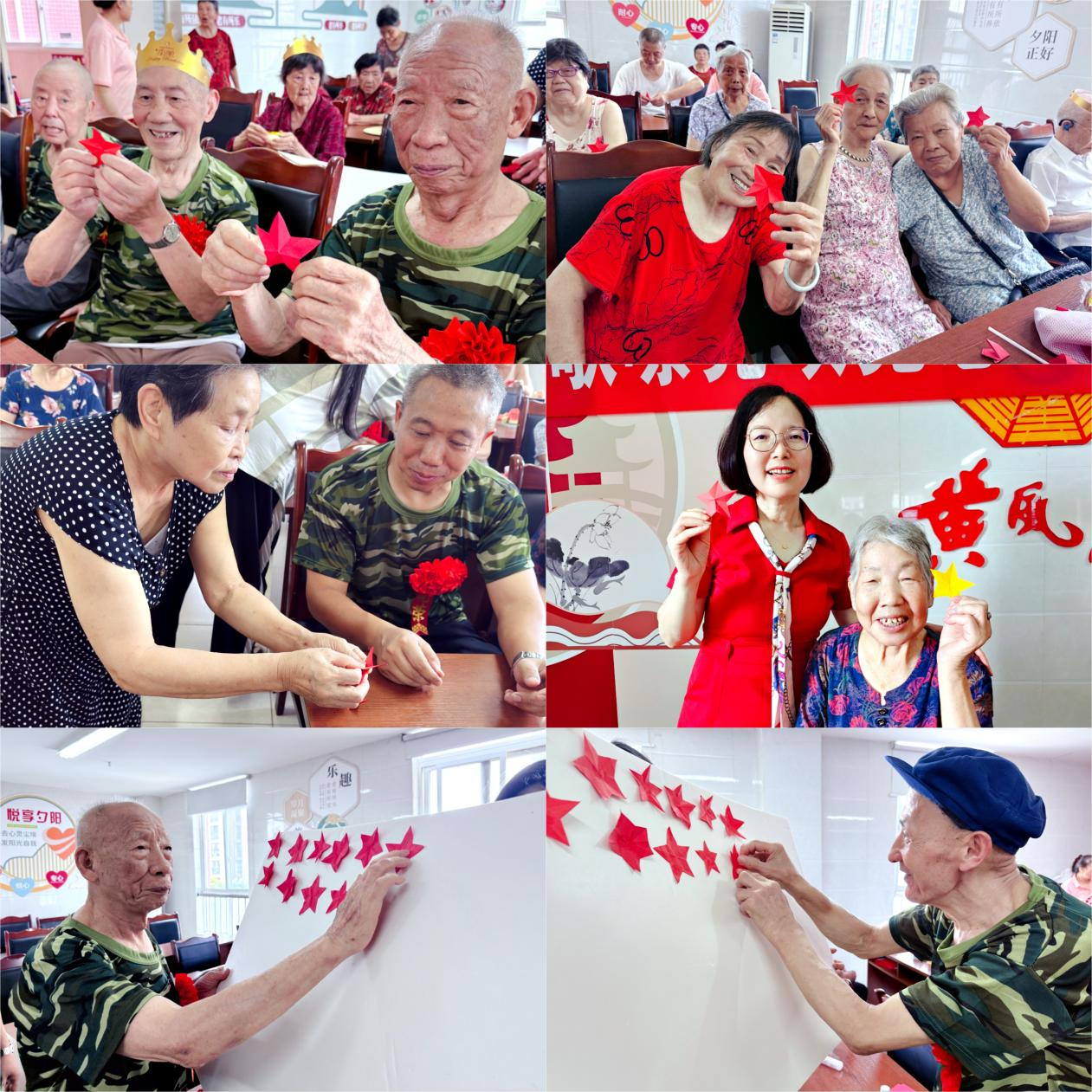 互动环节里,长者们手执红黄彩纸,折剪出一颗颗红星,再一起拼贴成一面鲜艳的国旗——指尖的温度,把爱国情怀悄悄接力。