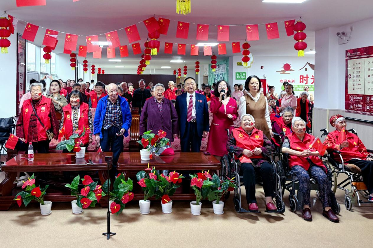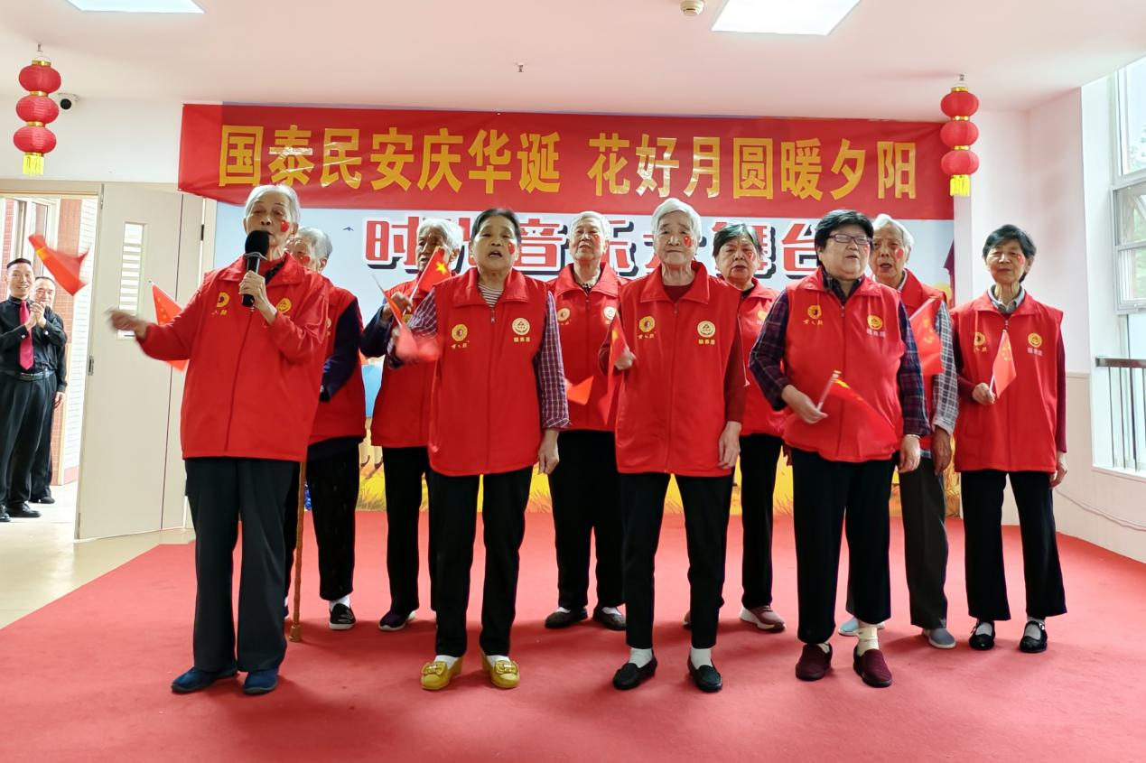 活动在庄严而热烈的氛围中拉开帷幕。一面面挥舞的五星红旗,映衬着长者们喜悦的脸庞。工作人员与长者们齐聚一堂,大家齐声高唱《国歌》,用歌声表达对祖国母亲最真挚的祝福与热爱。现场爱国情怀高涨,自豪感与幸福感在每个人心中激荡。