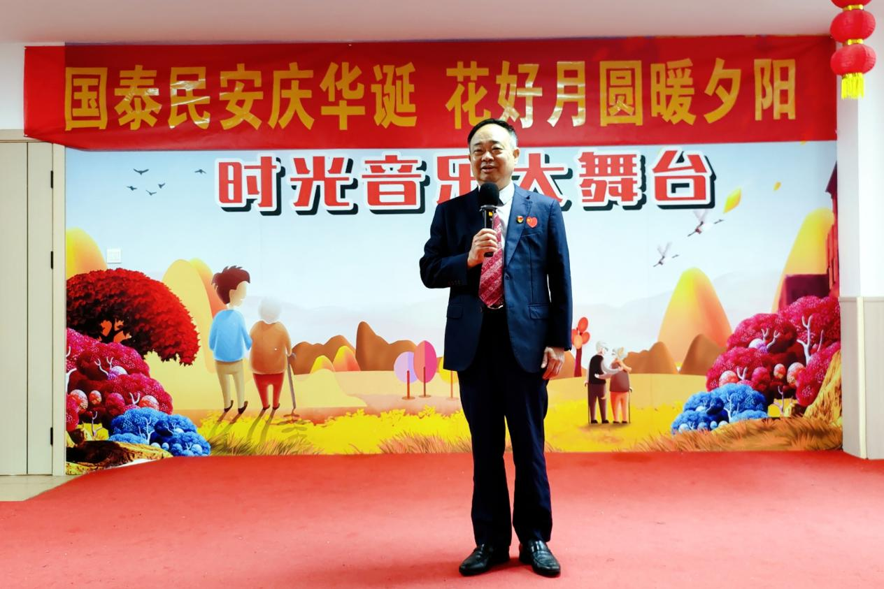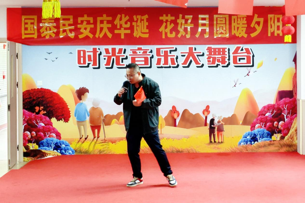 黄再军董事长国庆致辞,代表黄风湿集团及红阳颐养居全体同仁,向伟大的祖国致以最崇高的敬意和最真挚的祝福!也向在座的每一位长者,致以节日的亲切问候和美好祝愿。他指出:七十六载风雨兼程,我们的祖国日益繁荣富强。我们为祖国的每一个成就感到无比自豪。国家的强大,是我们每一个人,更是各位长者幸福安享晚年的最坚实保障。红阳颐养居始终秉承“帮天下儿女尽孝、替世上父母解难、为党和政府分忧”的服务宗旨,致力于为各位长者打造一个温馨、舒适、充满活力的家园。看到各位长辈在这里老有所养、老有所乐,脸上洋溢着幸福的笑容,是我们最大的欣慰。你们是社会的宝贵财富,没有你们过去的辛勤付出,就没有我们今天的幸福生活,国家的繁荣昌盛,是长者们幸福晚年的坚实保障。黄风湿·青白江红阳颐养居始终秉持‘老有所养、老有所乐’的宗旨,不仅要为长者们创造温馨、快乐的家,更要积极探索养老服务的新模式,努力为国家老龄事业的发展贡献一份力量。